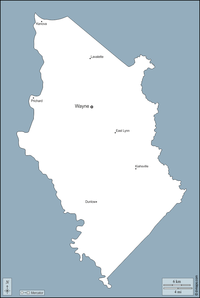 Dunlow, East Lynn, Kenova, Kiahsville, Lavalette, Prichard, Wayne.