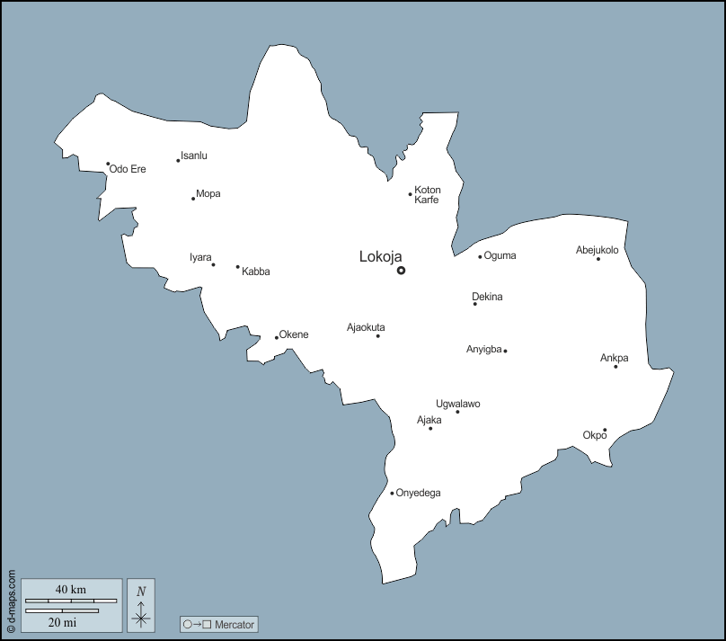 d-maps > 非洲 > 奈及利亞 > 科吉州 > 大纲, 主要城市, 名称