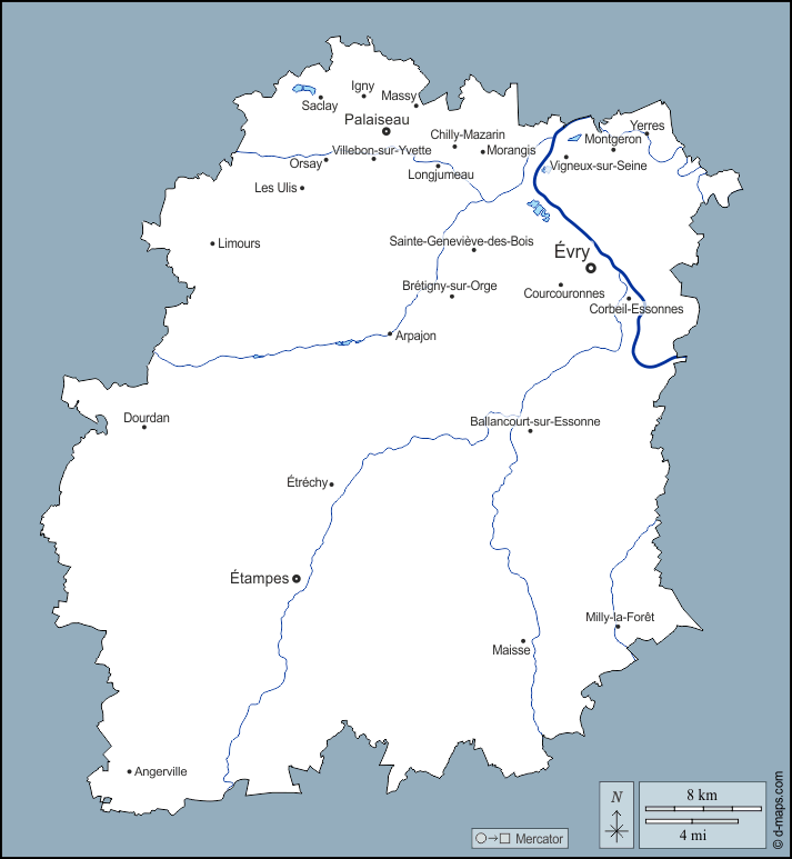d-maps > 欧洲 > 法国 > 埃松省 > 大纲, 水文学, 主要城市, 名称