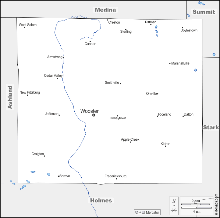 d-maps > 美国 > 俄亥俄州 > 韦恩县 > 边界, 水文学, 主要城市, 名称