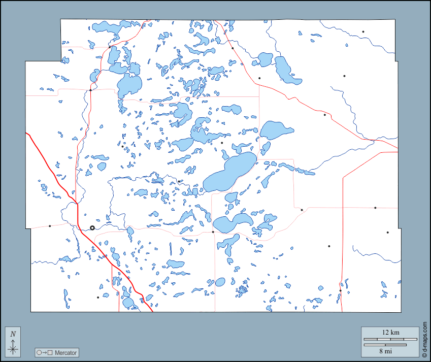 d-maps > 美国 > 明尼蘇達州 > 獭尾县 > 大纲, 水文学, 主要城市, 道路