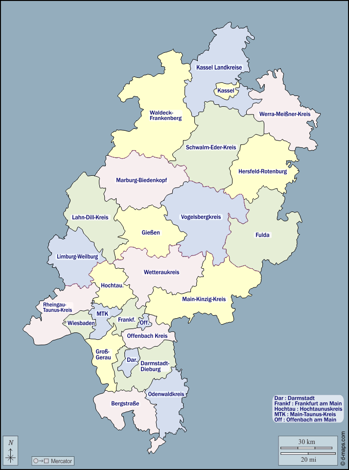 d-maps > 欧洲 > 德国 > 黑森州 > 大纲, 區域, 名称, 颜色
