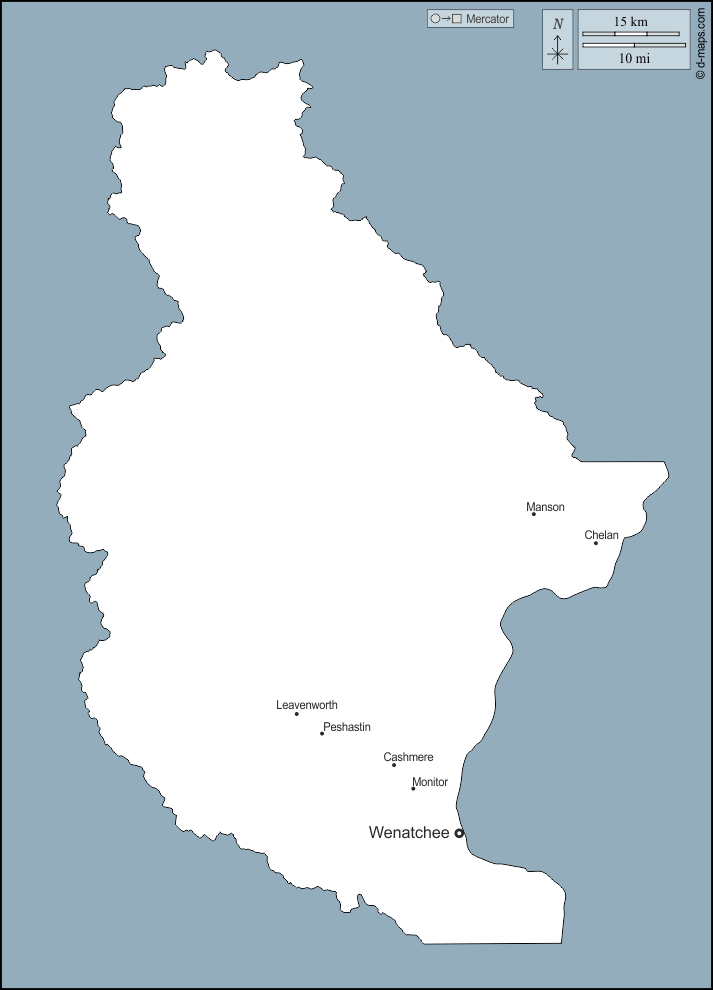 Cashmere, Chelan, Leavenworth, Manson, Monitor, Peshastin, Wenatchee.