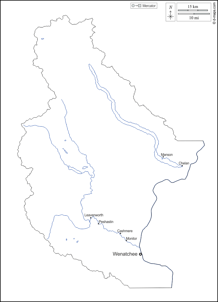 Cashmere, Chelan, Leavenworth, Manson, Monitor, Peshastin, Wenatchee.