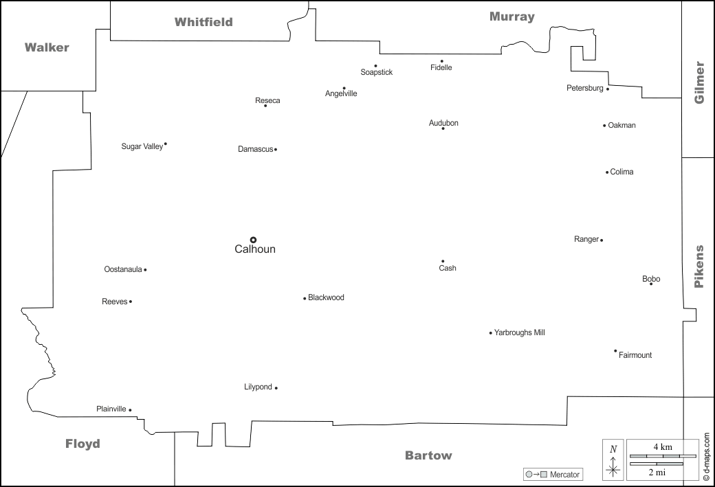 d-maps > 美国 > 喬治亞州 > 戈登县 > 边界, 主要城市, 名称, 白