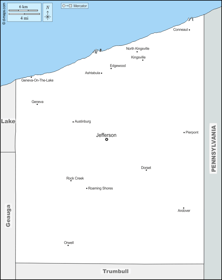 d-maps > 美国 > 俄亥俄州 > 阿什塔比拉县 > 边界, 主要城市, 名称
