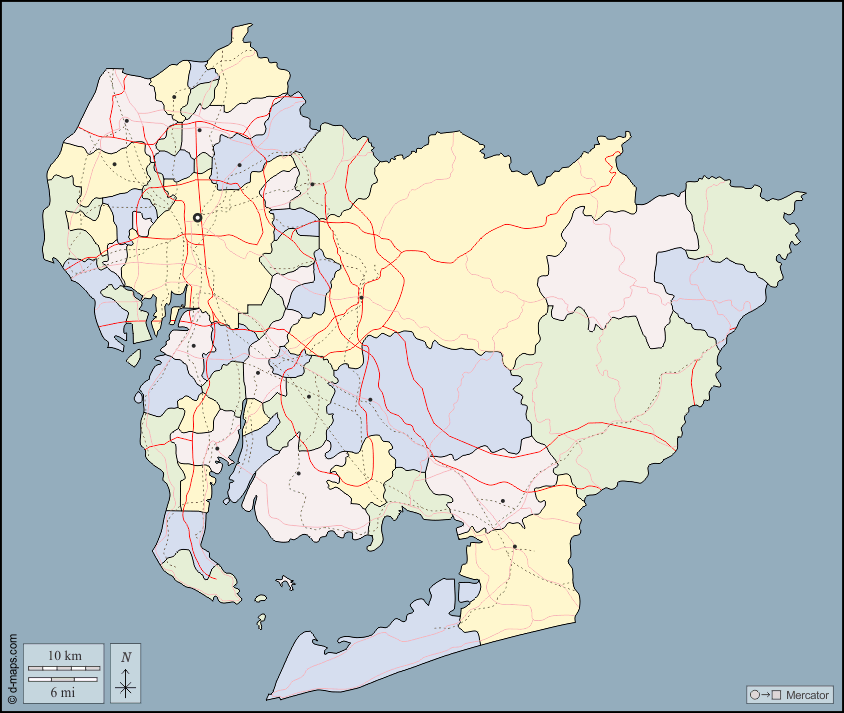 d-maps > 亚洲 > 日本 > 愛知縣 > 大纲, 市, 主要城市, 道路, 颜色