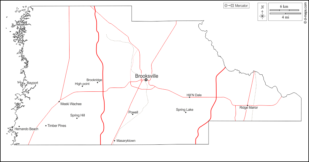 d-maps > 美国 > 佛罗里达州 > 埃尔南多县 > 大纲, 主要城市, 道路, 名称, 白