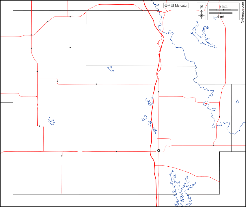 d-maps > 美国 > 奧克拉荷馬州 > 卡特县 > 边界, 水文学, 主要城市, 道路, 白