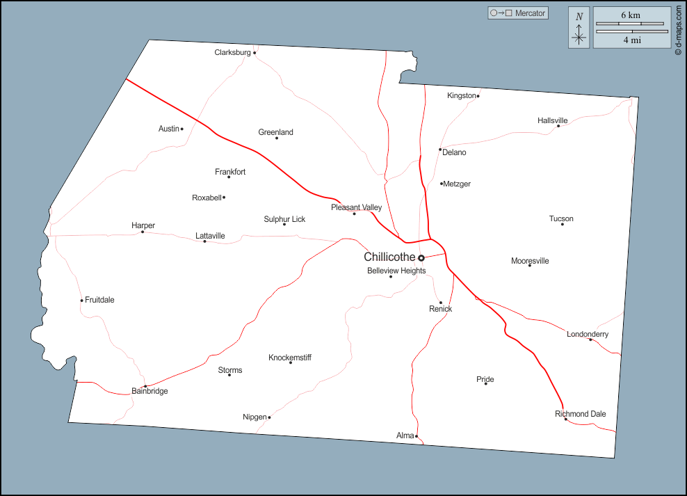 d-maps > 美国 > 俄亥俄州 > 罗斯县 > 大纲, 主要城市, 道路, 名称