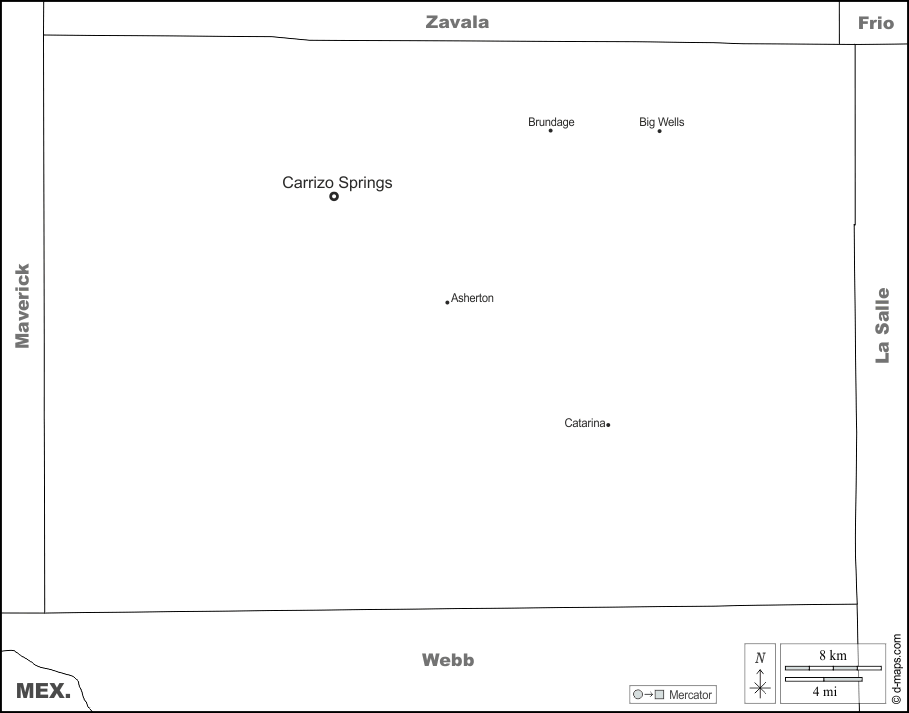 Asherton, Big Wells, Brundage, Carrizo Springs, Catarina.