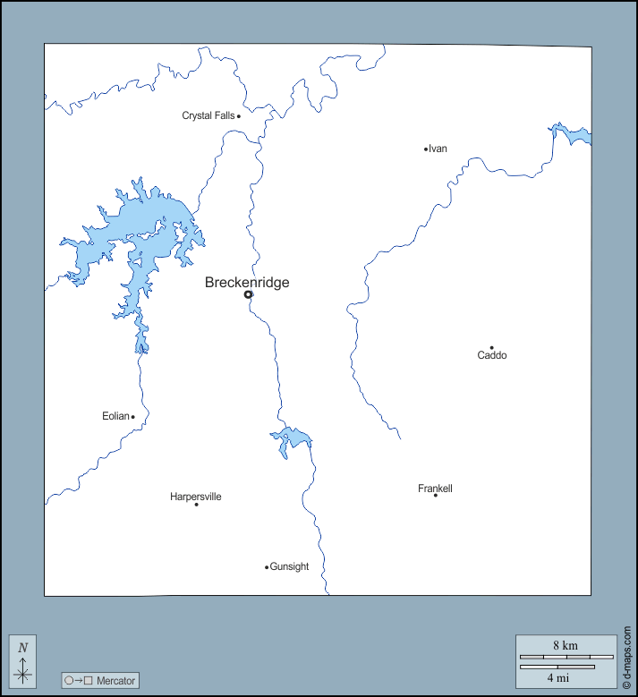 Breckenridge, Caddo, Crystal Falls, Eolian, Frankell, Gunsight, Harpersville, Ivan.