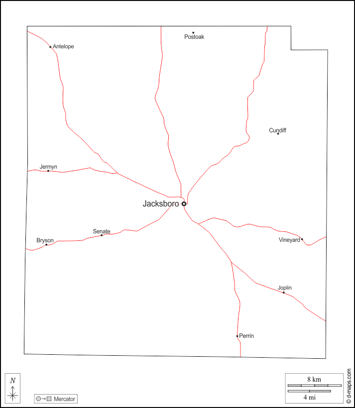 Antelope, Bryson, Cundiff, Jacksboro, Jermyn, Joplin, Perrin, Postoak, Senate, Vineyard.