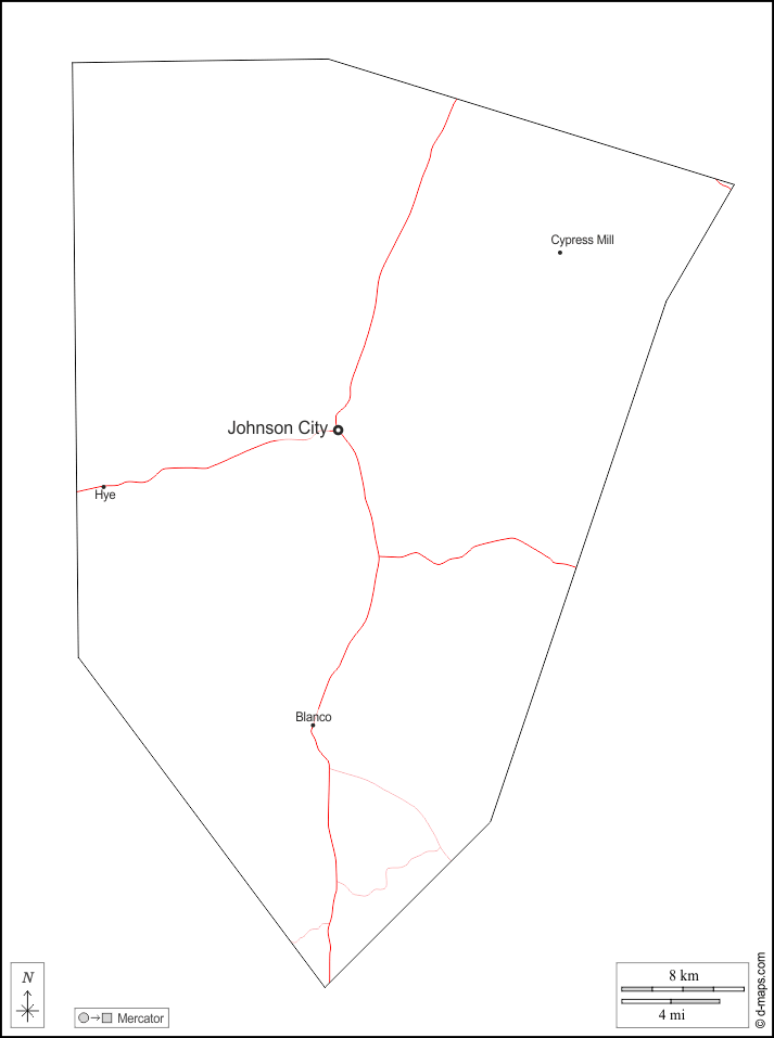 Blanco, Cypress Mill, Hye, Johnson City.