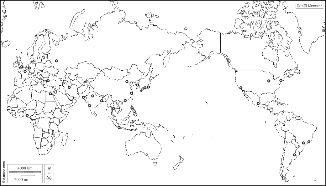 d-maps > 世界和海洋 > 世界计划圈(太平洋) > 国家, 主要城镇, 白