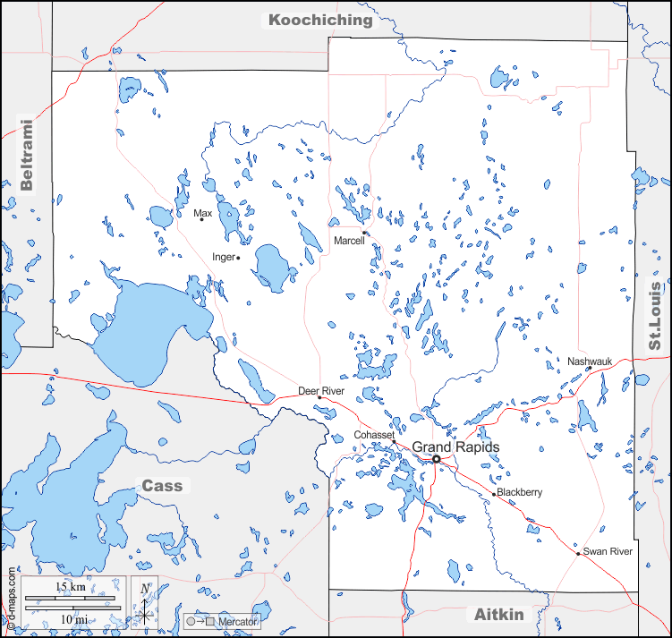 Blackberry, Cohasset, Deer River, Grand Rapids, Inger, Marcell, Max, Nashwauk, Swan River.