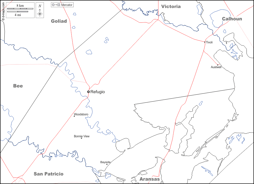 Austwell, Bayside, Bonnie View, Refugio, Tivoli, Woodsboro.