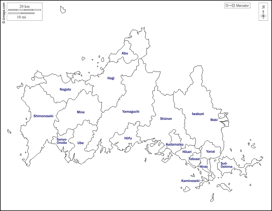 阿布、萩、光、平尾、保府、岩国、上关、久玉松、峰、长门、山阳小野田、下关、周南、索大岛、多巴、宇部、胁、山口、柳井。