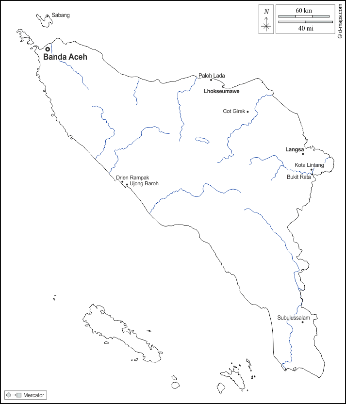 d-maps > 亚洲 > 印度尼西亚 > 亞齊特區 > 大纲, 水文学, 主要城市, 名称, 白