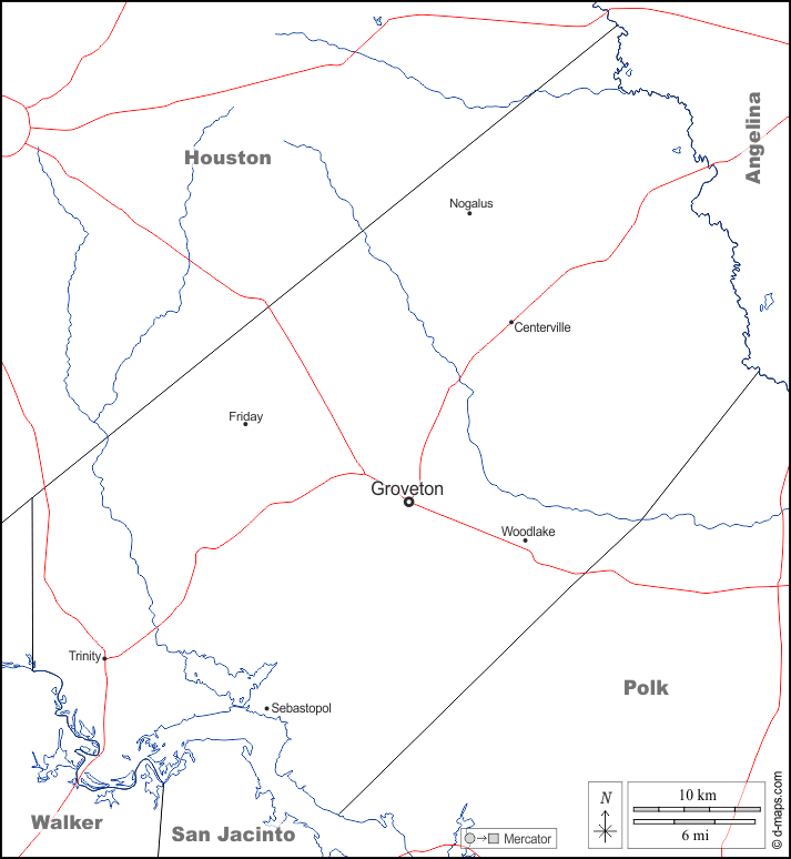 Centerville, Friday, Groveton, Nogalus, Sebastopol, Trinity, Woodlake.