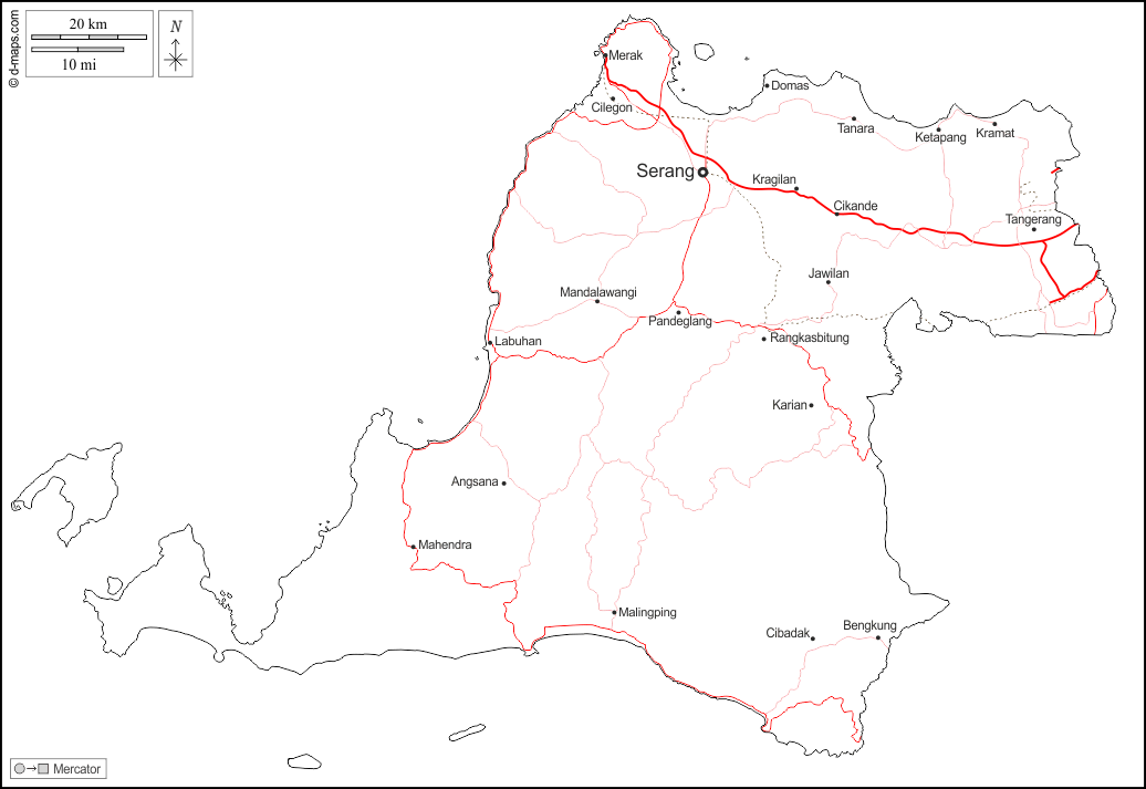 d-maps > 亚洲 > 印度尼西亚 > 万丹省 > 大纲, 主要城市, 道路, 名称, 白