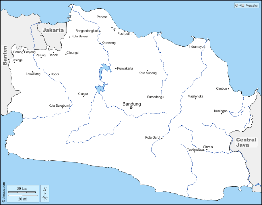 亚洲 > 印度尼西亚 > 西爪哇省 > 边界, 水文学, 主要城市, 名称