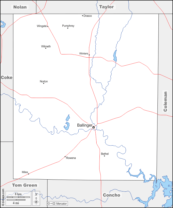 Ballinger, Bethel, Drasco, Miles, Norton, Pumphrey, Rowena, Wilmeth, Wingate, Winters.
