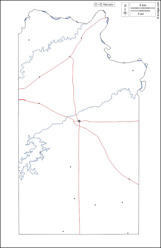 d-maps > 美国 > 德州 > 克莱县 > 大纲, 水文学, 主要城市, 道路, 白