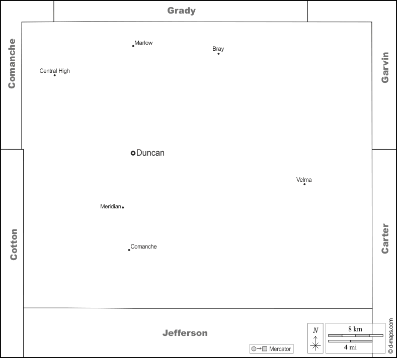 Bray, Central High, Comanche, Duncan, Marlow, Meridian, Velma.