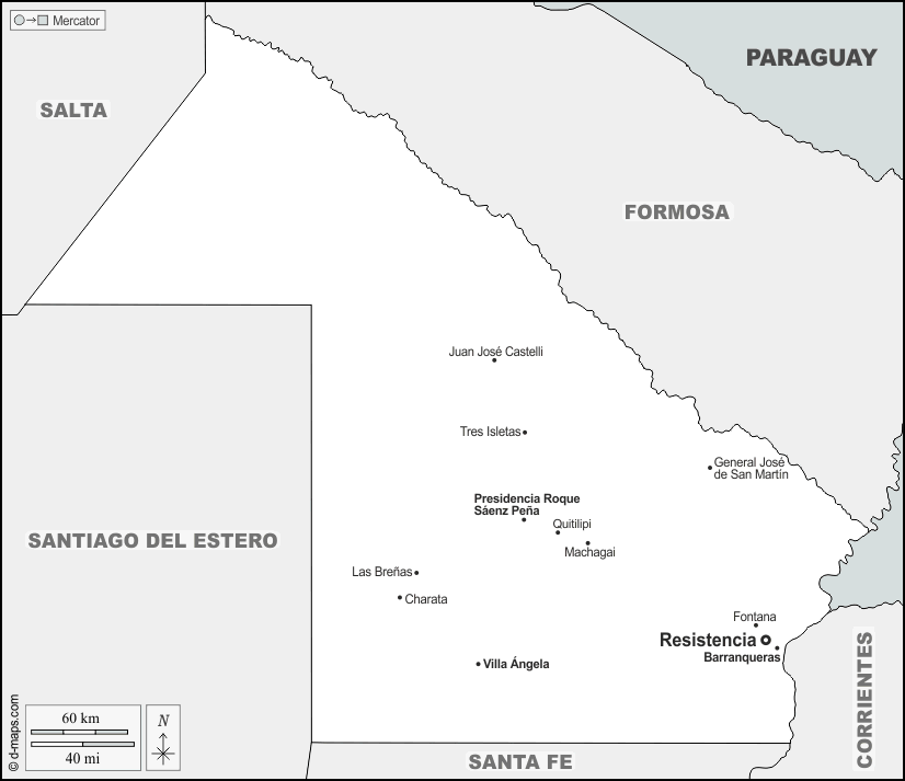 d-maps > 美洲 > 阿根廷 > 查科省 > 边界, 主要城市, 名称