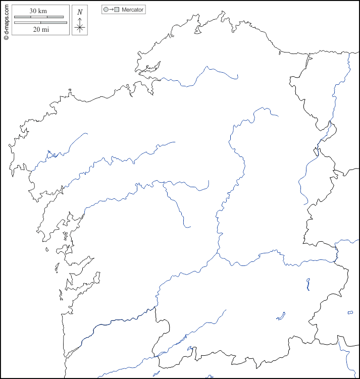 d-maps > 欧洲 > 西班牙 > 加利西亚 > 边界, 水文学, 白