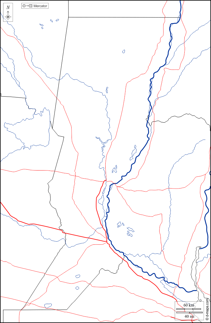 d-maps > 美洲 > 阿根廷 > 聖大非省 > 边界, 水文学, 道路, 白