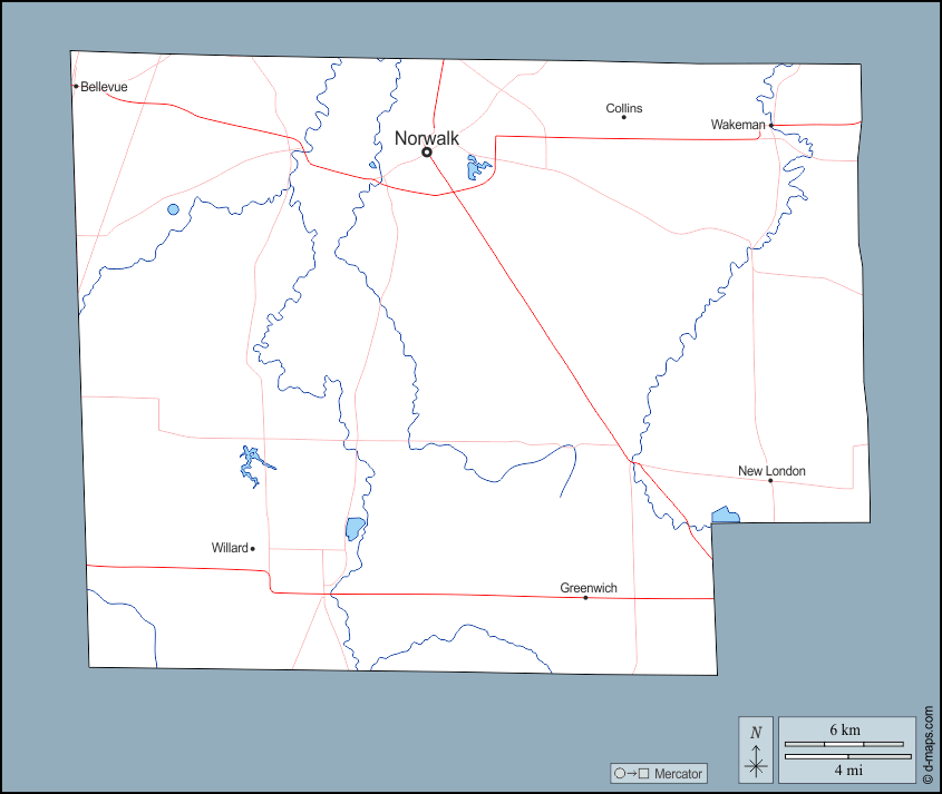 Bellevue, Collins, Greenwich, New London, Norwalk, Wakeman, Willard.