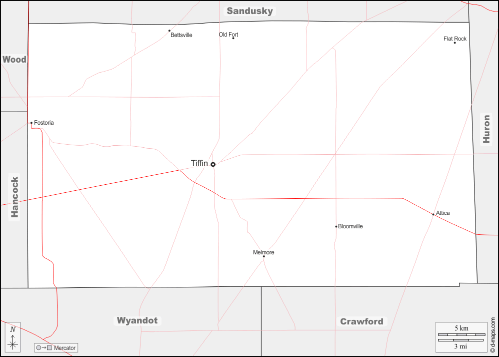 Attica, Bettsville, Bloomville, Flat Rock, Fostoria, Melmore, Old Fort, Tiffin.