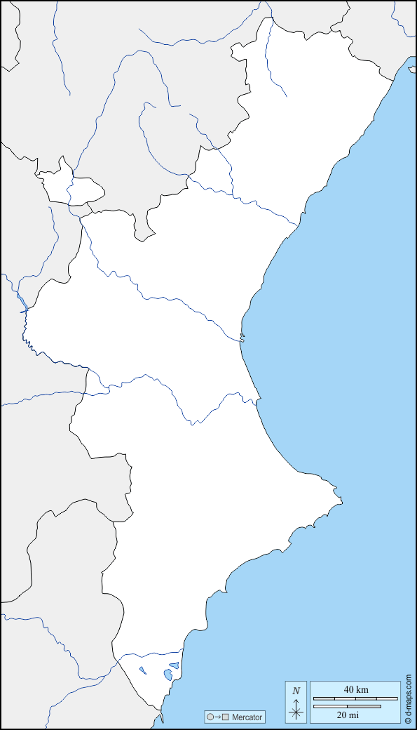 d-maps > 欧洲 > 西班牙 > 巴倫西亞自治區 > 边界, 水文学