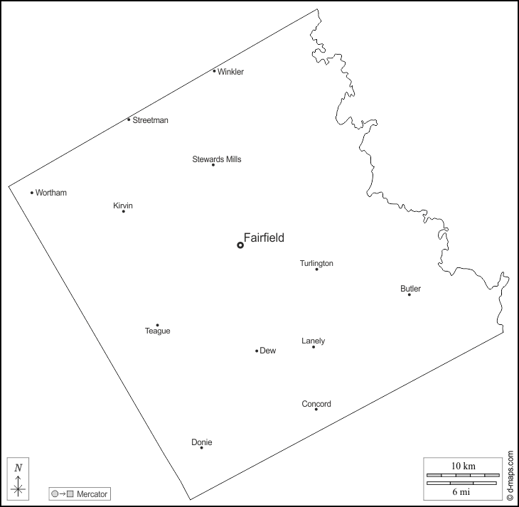 Butler, Concord, Dew, Donie, Fairfield, Kirvin, Lanely, Stewards Mills, Streetman, Teague, Turlington, Winkler, Wortham.