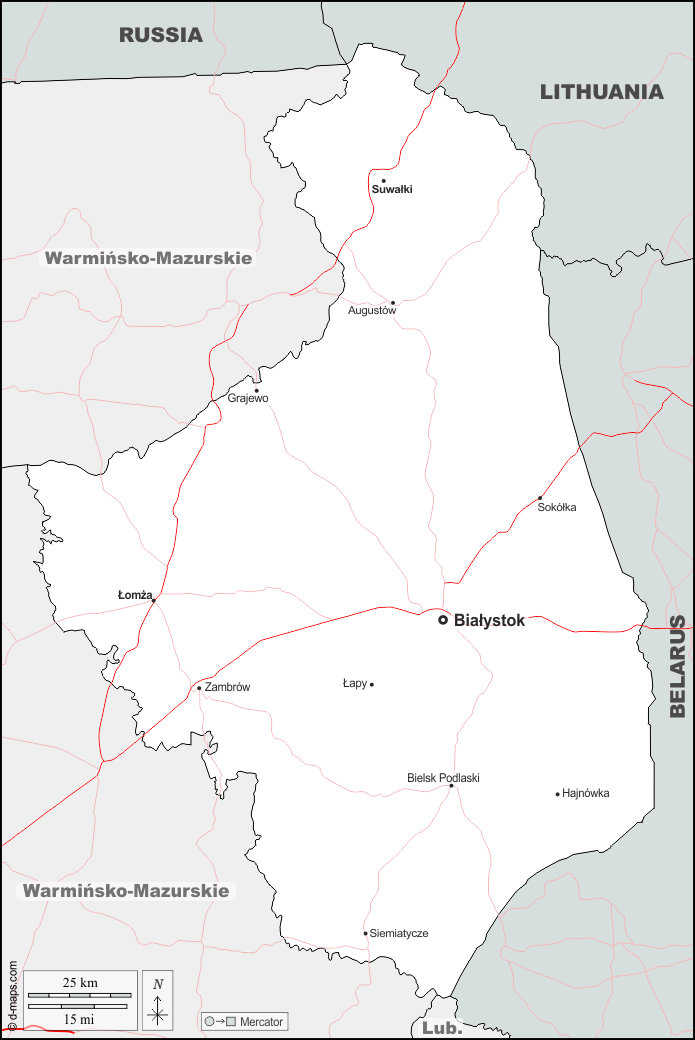 d-maps > 欧洲 > 波兰 > 波德拉謝省 > 边界, 主要城市, 道路, 名称