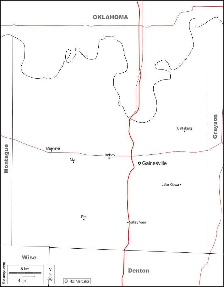 Callisburg, Era, Gainesville, Lake Kiowa, Lindsay, Muenster, Myra, Valley View.