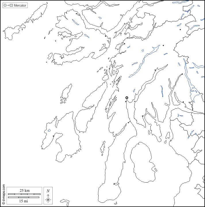 d-maps > 欧洲 > 英国 > 阿盖尔-比特 > 边界, 水文学, 主要城市, 白