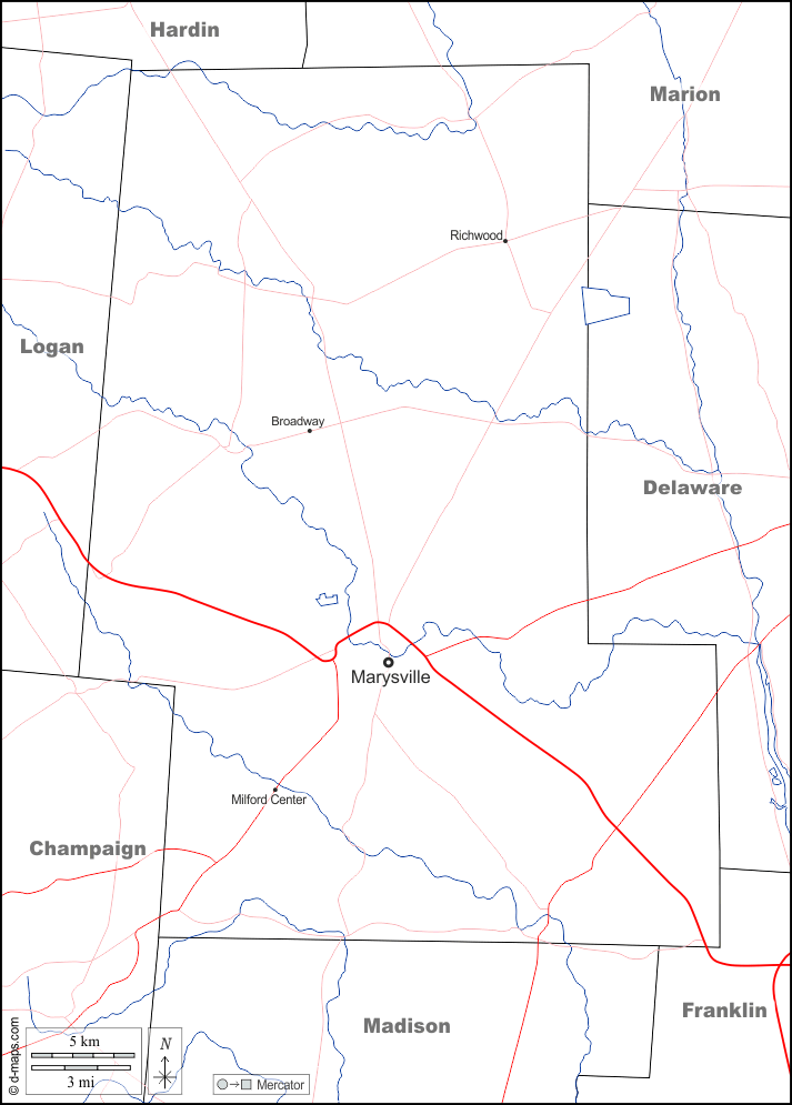 Broadway, Marysville, Milford Center, Richwood.
