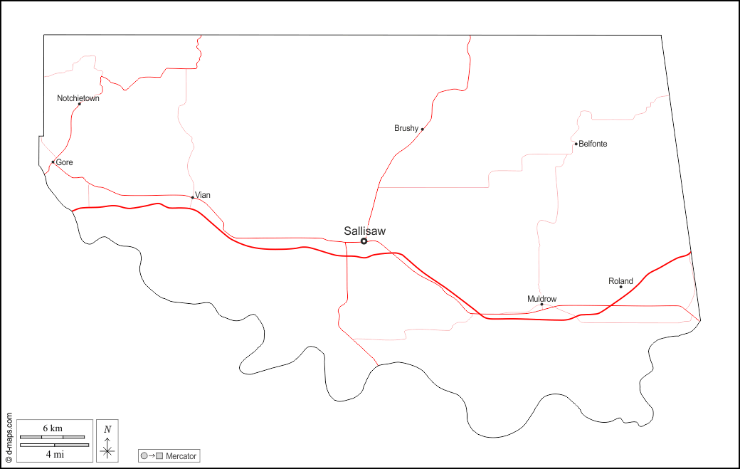 Belfonte, Brushy, Gore, Muldrow, Notchietown, Roland, Sallisaw, Vian.