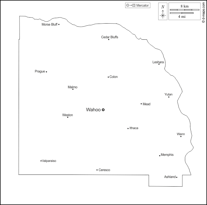 Ashland, Cedar Bluffs, Ceresco, Colon, Ithaca, Leshara, Malmo, Mead, Memphis, Morse Bluff, Prague, Valparaiso, Wahoo, Wann, Weston, Yutan.