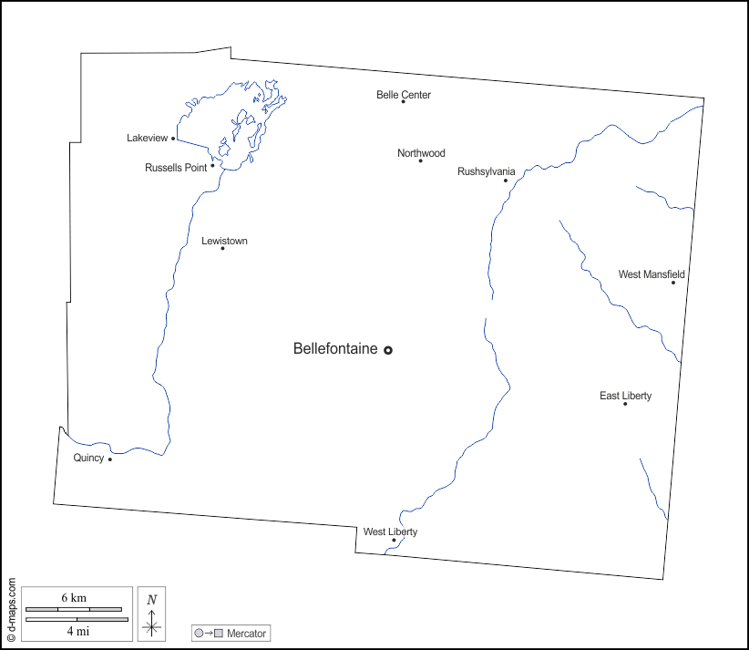 d-maps > 美国 > 俄亥俄州 > 洛根县 > 大纲, 水文学, 主要城市, 名称, 白