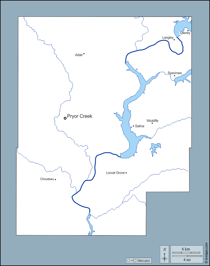 Adair, Chouteau, Disney, Langley, Locust Grove, Pryor Creek, Salina, Spavinaw, Wickliffe.