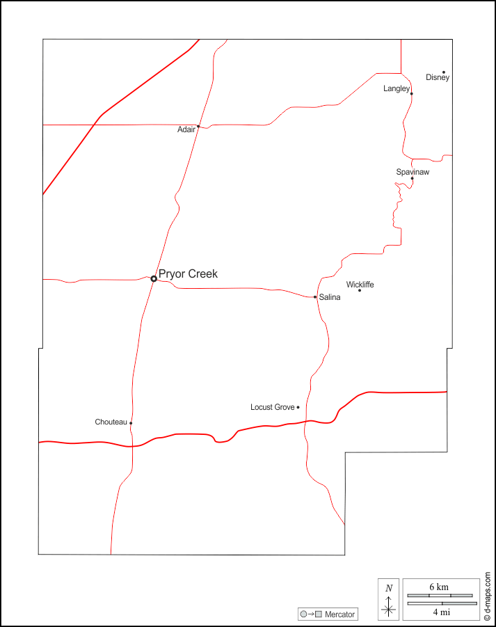 Adair, Chouteau, Disney, Langley, Locust Grove, Pryor Creek, Salina, Spavinaw, Wickliffe.