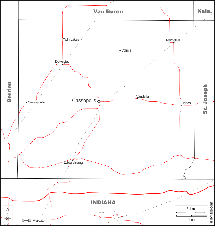 Cassopolis, Dowagiac, Edwardsburg, Marcellus, Vandalia.