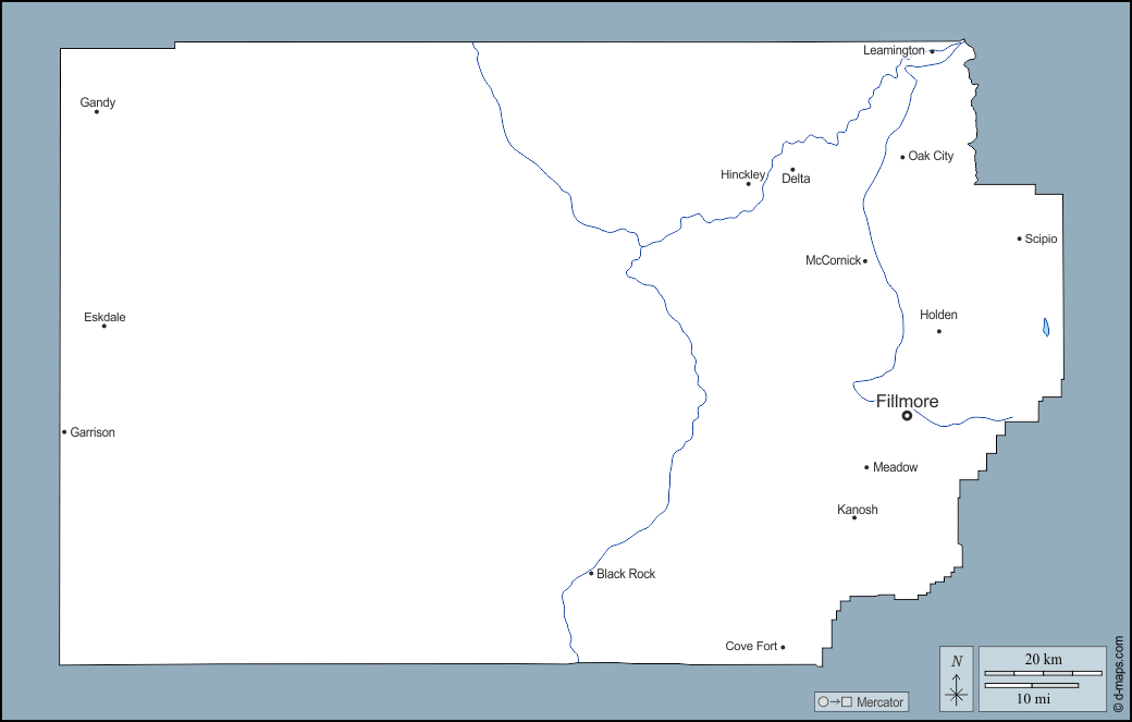 d-maps > 美国 > 犹他州 > 米勒德县 > 大纲, 水文学, 主要城市, 名称