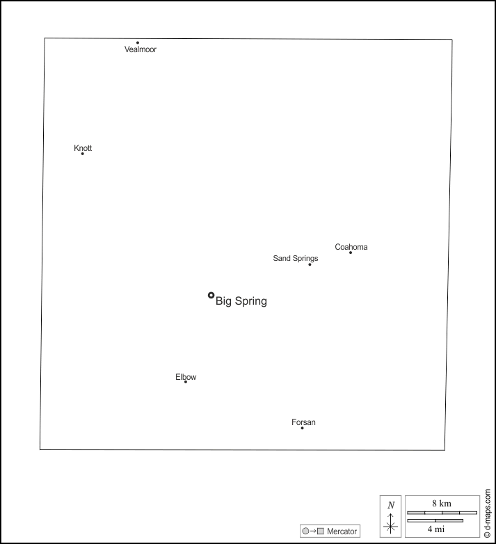 Big Spring, Coahoma, Elbow, Forsan, Knott, Sand Springs, Vealmoor.