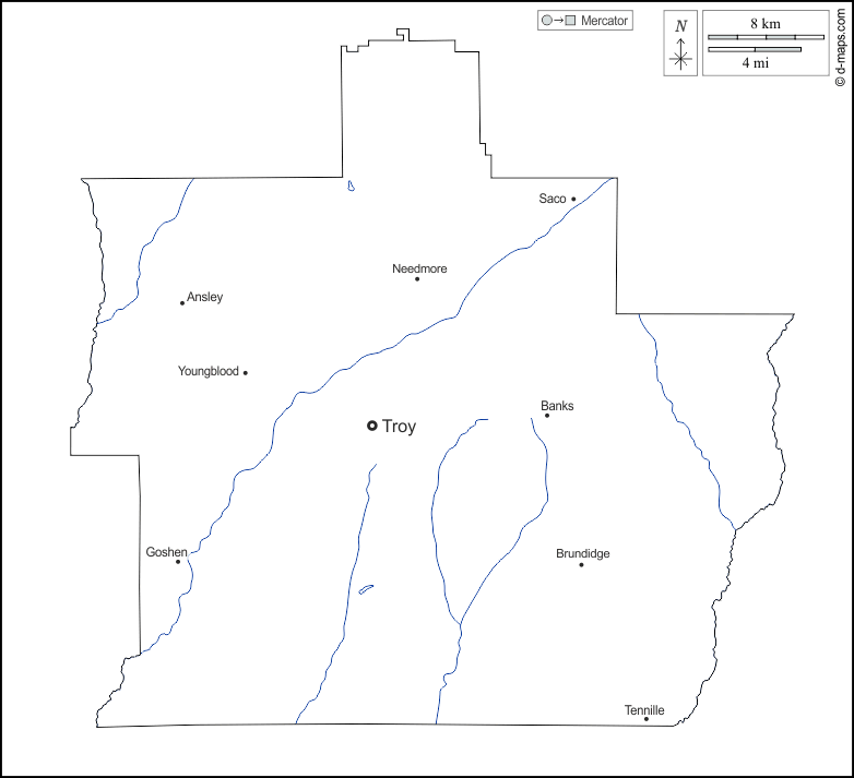 Ansley - Banks - Brundidge - Goshen - Needmore - Saco - Tennille - Troy - Youngblood