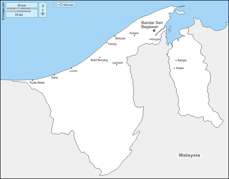 d-maps > 亚洲 > 汶莱 > 边界, 主要城市, 名称